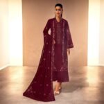 Embroidered Dhanak 3-piece suit | MK-06